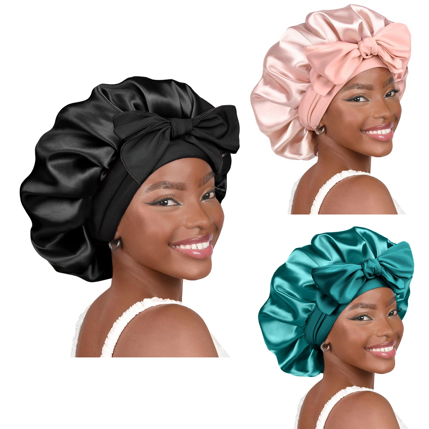 Silk Satin Bonnets for Sleeping Silk Hair Cap Elastic Wide Band Silk Nightcap for Curly Hair Long Hair Women Men
