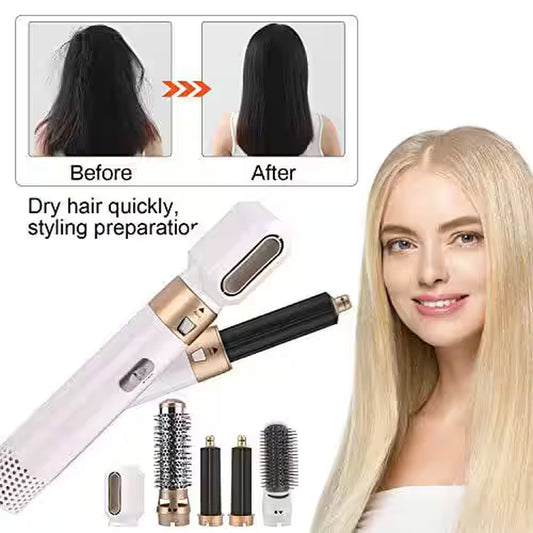 5-In-1 Hot Air Brush with Detachable Brush Heads for Straightening, Curling, and Styling